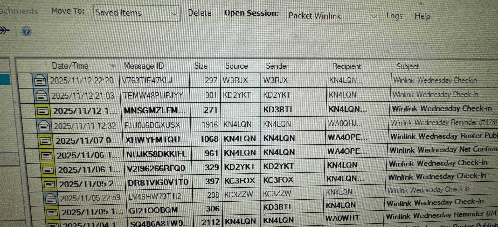 Photo attached from Winlink Express in the club shack.